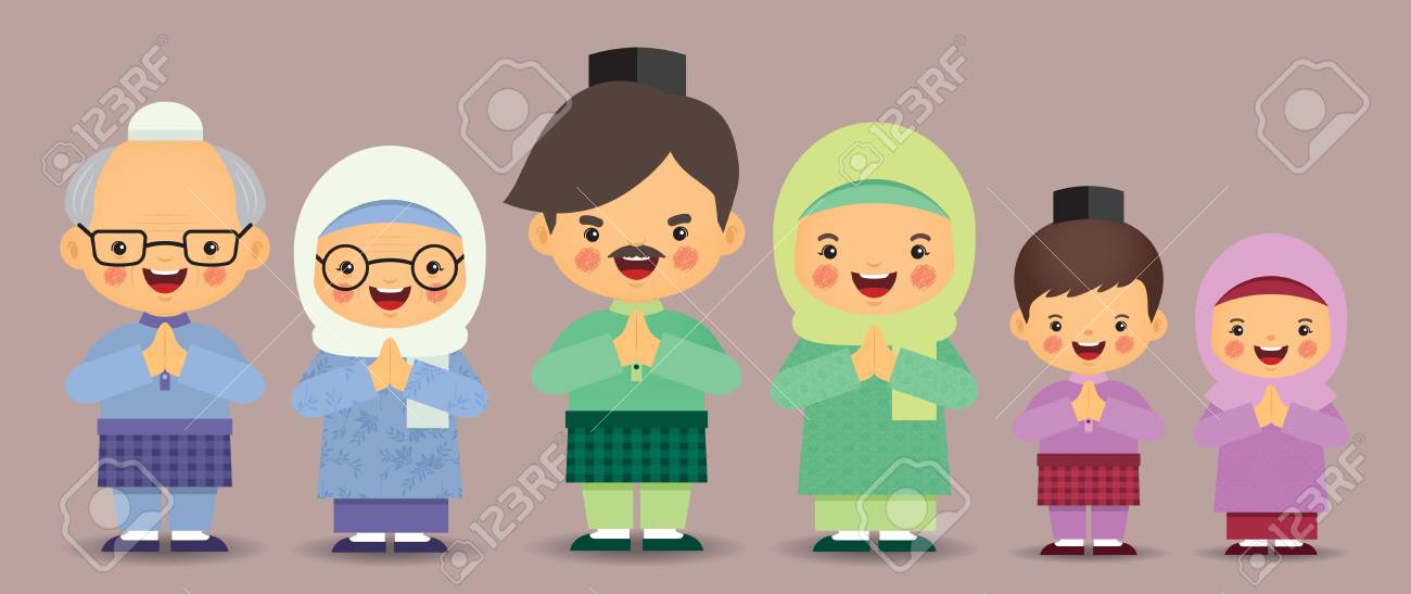 Set Of Cute Cartoon Muslim Family Isolated In Flat Vector Design Hari Raya Aidilfitri Malay Character Design Father Mother Grandfather Grandmother Brother Sister Royalty Free Cliparts Vectors And Stock Illustration Image